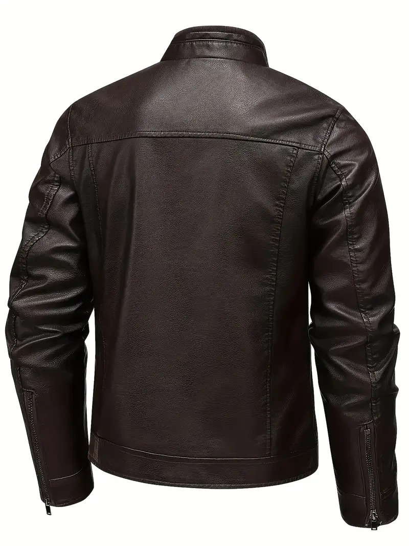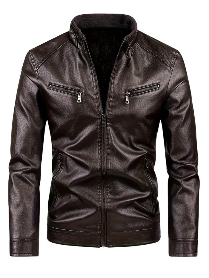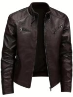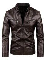 Men’s Black Jacket Trendy Stand Collar with Zippered Pockets, Casual Loose Fit for Fall/Winter