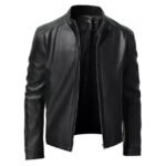 Men’s Black Jacket Trendy Stand Collar with Zippered Pockets, Casual Loose Fit for Fall/Winter