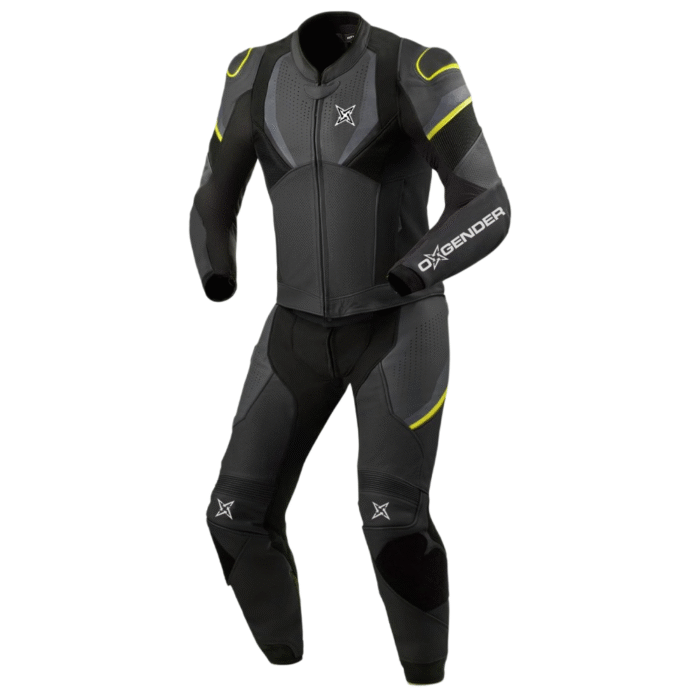 One piece sporty leather motorcycle suit